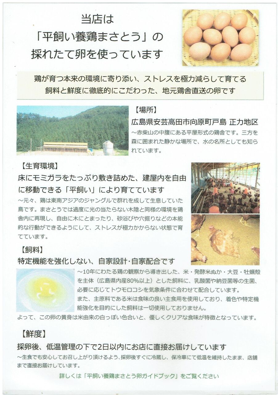 初めてのお客様には調理前に割ってみた卵と、この説明文をお見せしています。