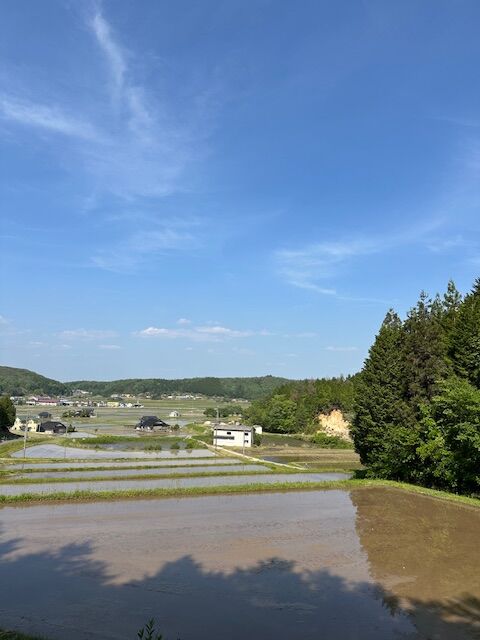 美しいでしょう? 5月半ば、田植えのころの画像です^^ 六望のお米は100%こちらの農家さんでまかなっています。だからこの苗が成長したものの一部が皆さまのお口に入るというわけ(´∀`) この状態から見られて安心と嬉しいですね☆ しかし、ただでさえ大変な<令和の米騒動>真っ最中なのに、こんなに雨が少ないとこれもどうなるんだろう…って わたしなんか漠然と思うだけで、実際 農家さんたちの心の内や計り知れません… 暑さ、値段、水不足。どうかどうか今年の秋も無事においしい新米に恵まれますように。そんな願いとともに今年も田んぼの画像シェアです(*´ -`)(´- `*)