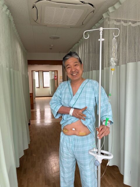 それから、パッと見、そうでもないかもしれませんが、やっぱり「腹まわりの肉」が、腹腔鏡手術にはじゃまだったみたいで、何かまたそういうことがあったときのためにも、腹回りはやせた方がいいと助言を受けたようです。じゃ、腹肉がたっぷりあったら、どうなるのかっていうと "いわゆる メス" 入れることになるわけですね。そしたらダメージも大きいし、回復にも時間がかかるので… なにが言いたいかと言えば「世の皆さん!やっぱり腹回りは、せめて店主程度までです!笑」
