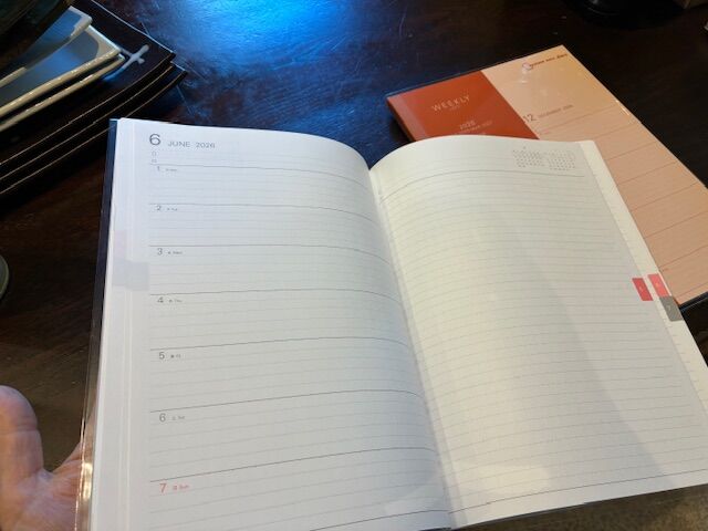 六望で使っている予約帳です。メーカーは「レイメイ藤井」10年間同じものを使いました^^ 1500円くらいするものですが、シンプルで使いやすく、大きさも適度で、使いやすく、これじゃなきゃダメ!になっているひとつです。
